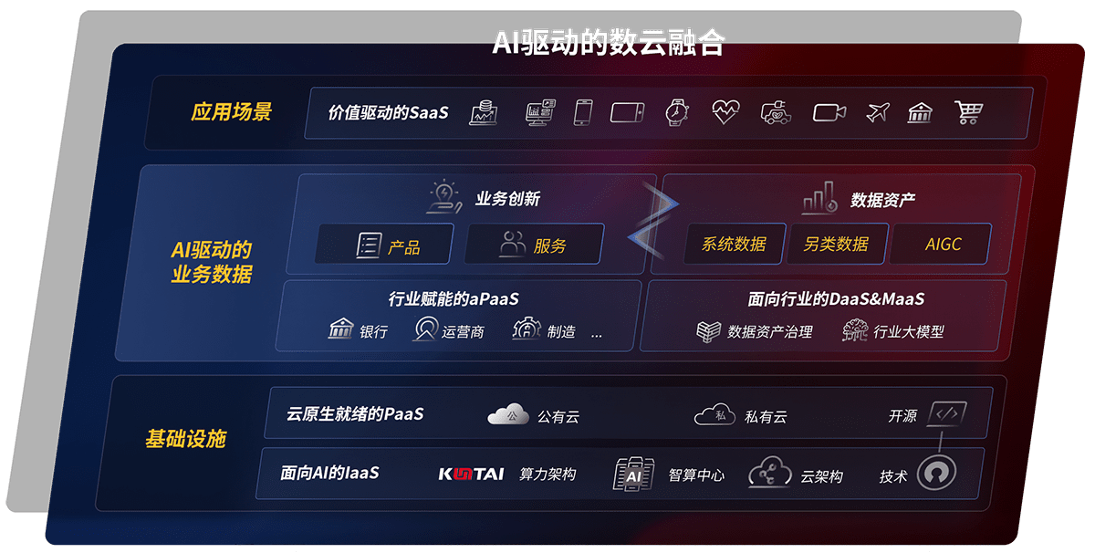 以帝豪国际鲲泰全国产化计算产品帮助金融行业客户构筑数字底座;以丰富的AI和数云产品及方案,,,,保障数据安全,,,,挖掘数据价值,,,提升服务品质